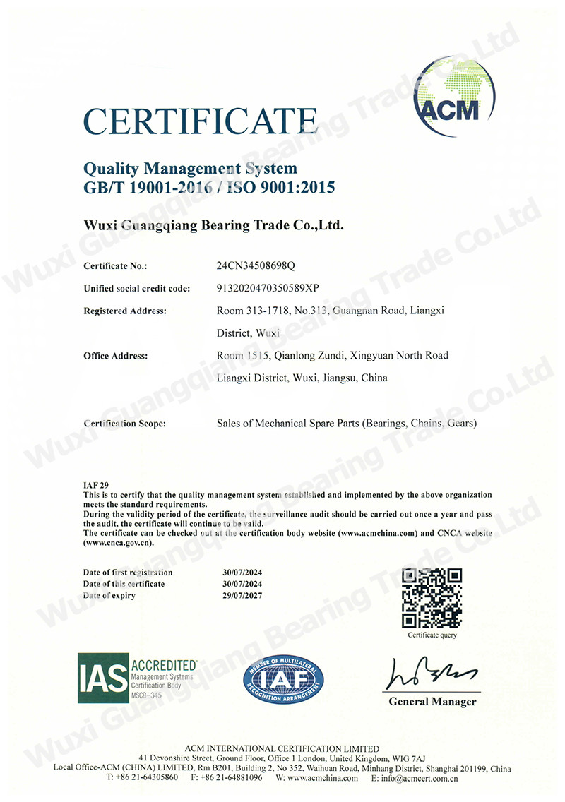 أثناء إنتاج المحامل، هناك 5 عمليات نقوم بفحص جزء المحامل للتأكد من أن كل جزء من المحامل التي أنتجناها ستصل إلى معيار ISO9001.